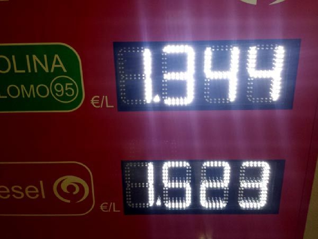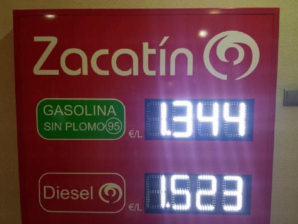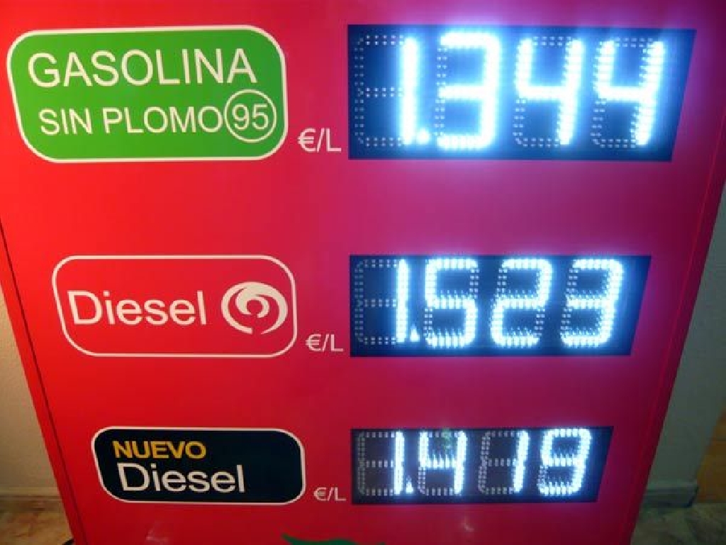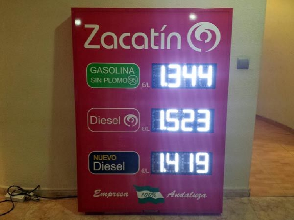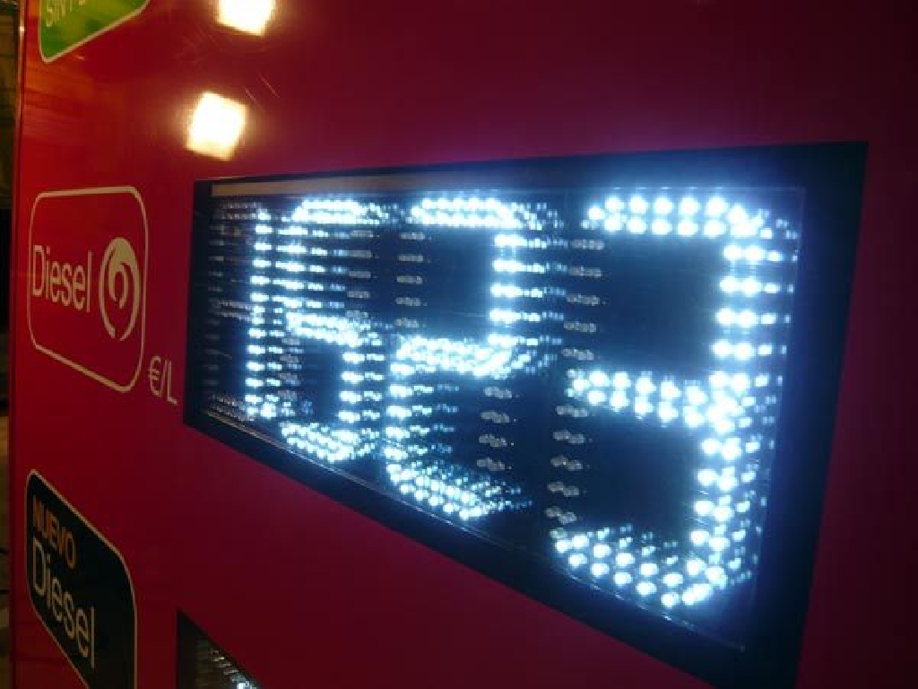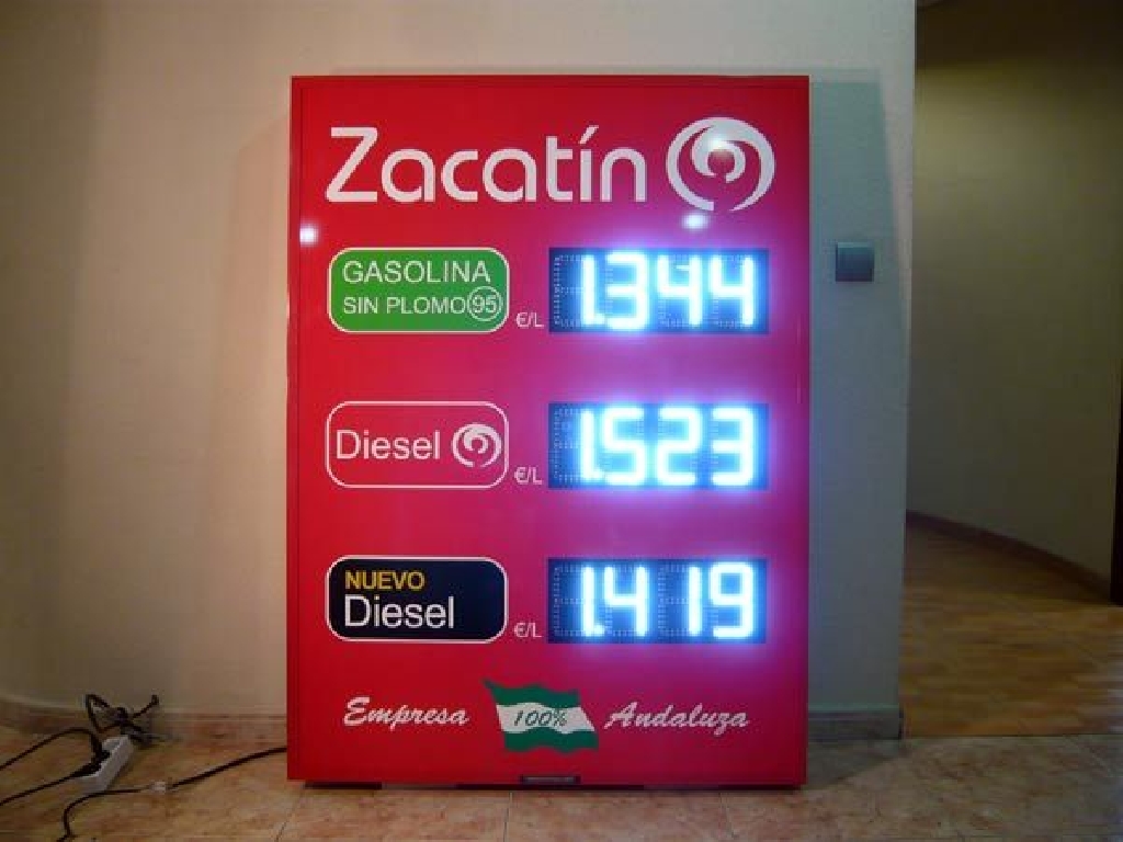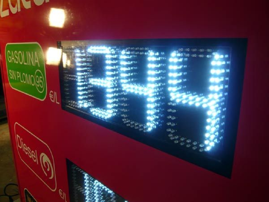 Carteles led para estaciones de servicio con displays COMBUS15 de color blanco. Dimensiones: 150 cm. de alto y 110 cm. de ancho. Altura de los d铆gitos: 15 cm.