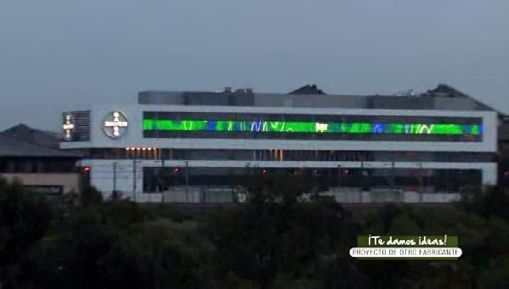 En este proyecto de decoraci贸n de fachadas con cortinas de leds se utilizaron cortinas de tubos de leds. Su alto 铆ndice de estanqueidad y alta luminosidad la hacen perfecta para este tipo de aplicaciones. Pueden cubrir cualquier parte del edificio, incluso ventanales. Su alto grado de transparencia permite el paso de gran cantidad de luz al interior, lo que hace que pasen casi desapercibidas. Permiten mostrar video real, textos, fondos din谩micos, etc. a todo color.