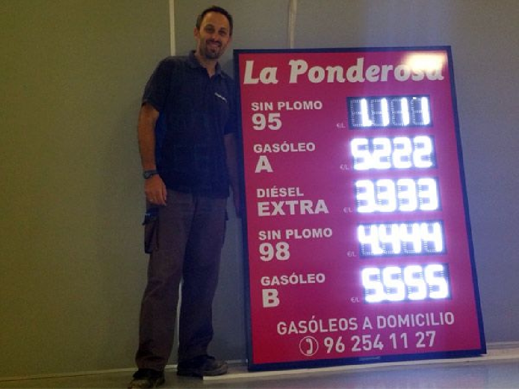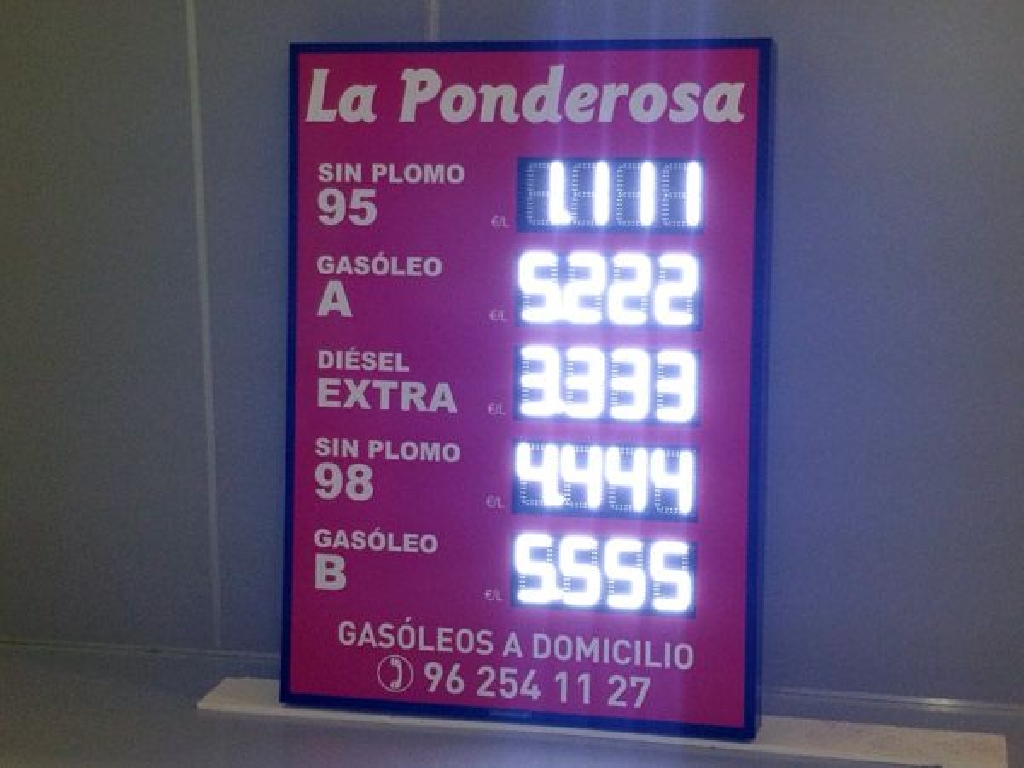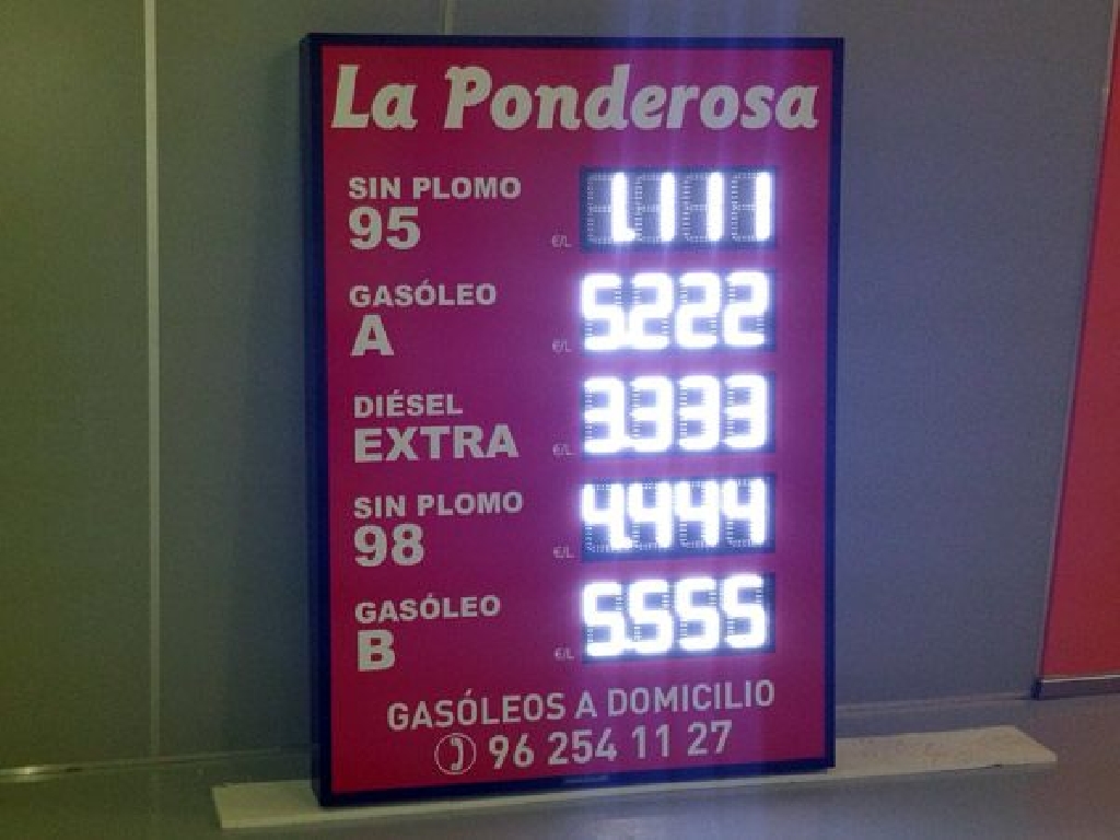 Carteles y letreros con dígitos luminosos para gasolineras y estaciones de servicio. Están preparados para ser colgados de la fachada de su estación de servicio y atraer la atención incluso en las horas de más sol.