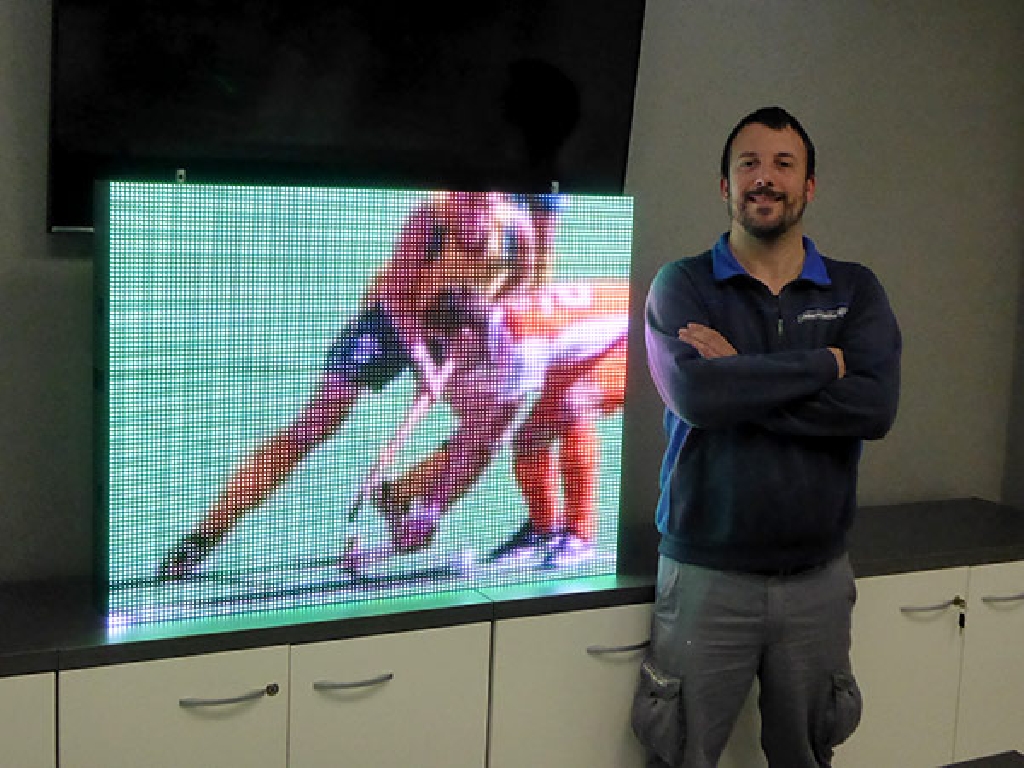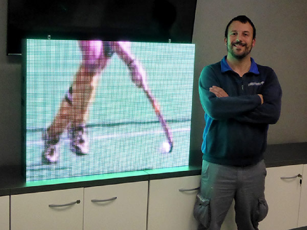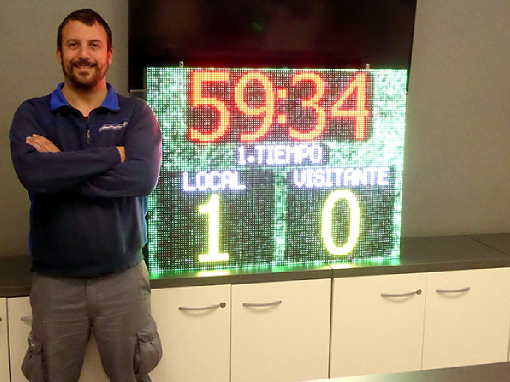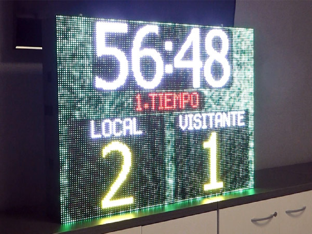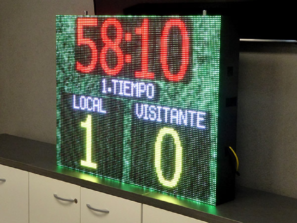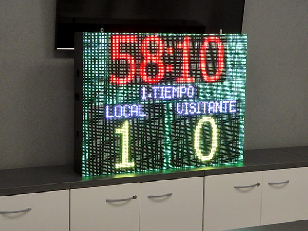Suministro de marcador de hockey sobre hierba para la Federación Madrileña de Hockey. Dimensiones: 102×77 cm. Paso: P8mm. Resolución: 128×96 px. Reproduce animaciones de gol, tarjetas verde, amarilla y roja, publicidad y patrocinios. Control a través de consola WiFi con pantalla táctil. Bocina de alta potencia incorporada.