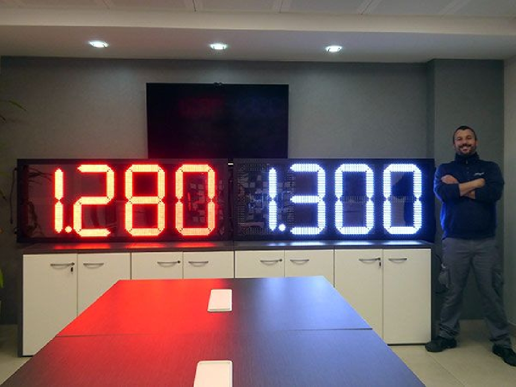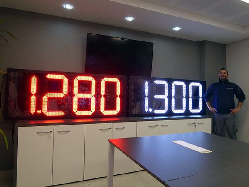 Paneles displays con dígitos luminosos modelo COMBUS 60 con dígitos LED disponibles en varios colores de 60 cm. de altura. Dimensiones: 177×71 cm. Control a través de mando a distancia. Posibilidad de comunicación a través de protocolos. Chasis de gran robustez y alta estanqueidad.