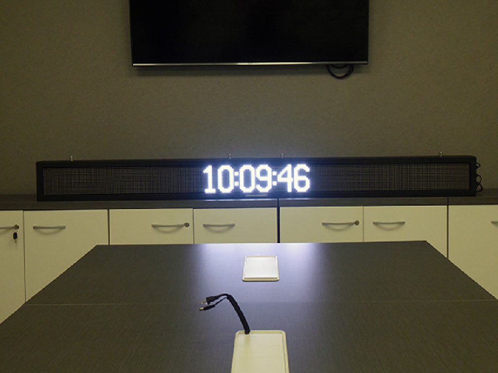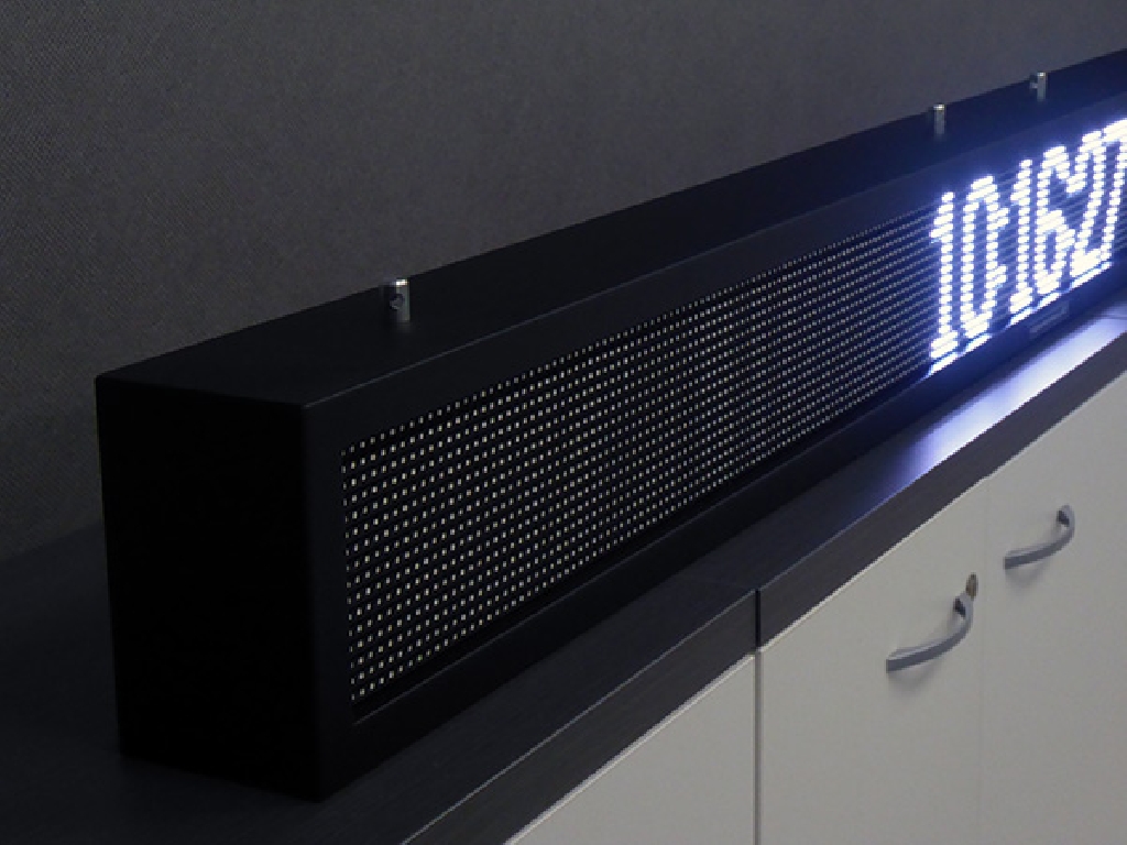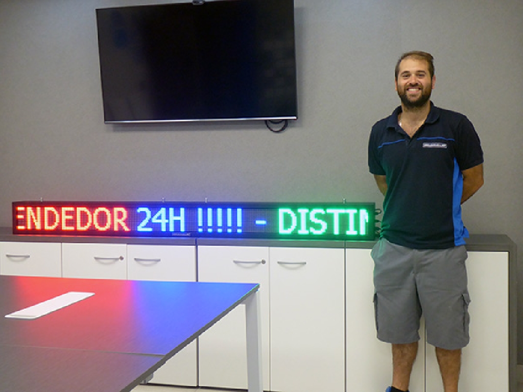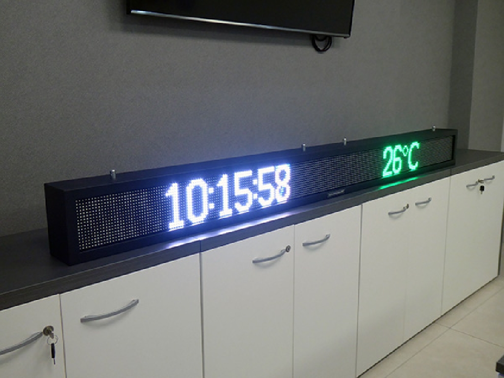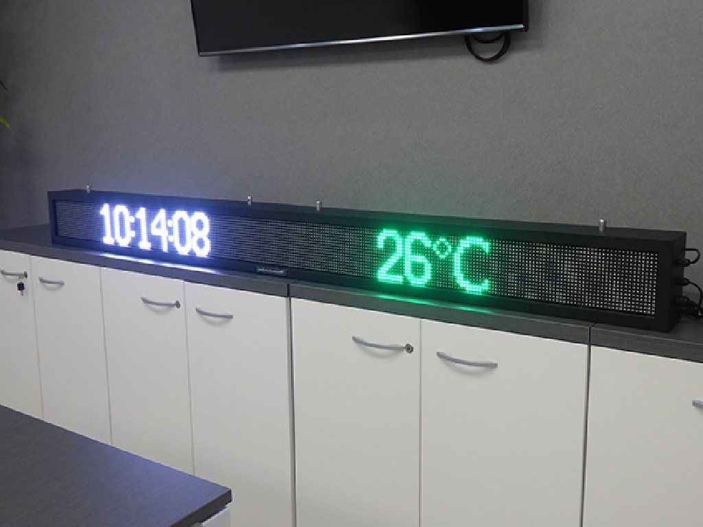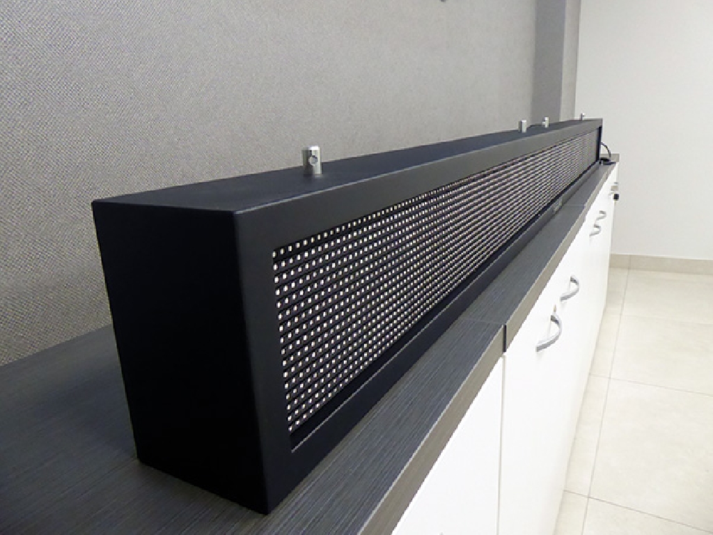 Letrero programable con capacidad de reproducir textos animados, imágenes y vídeos. Su resolución es de 256×16 px. Cuenta con Leds Full Color que permiten mostrar toda la gama de colores RGB.