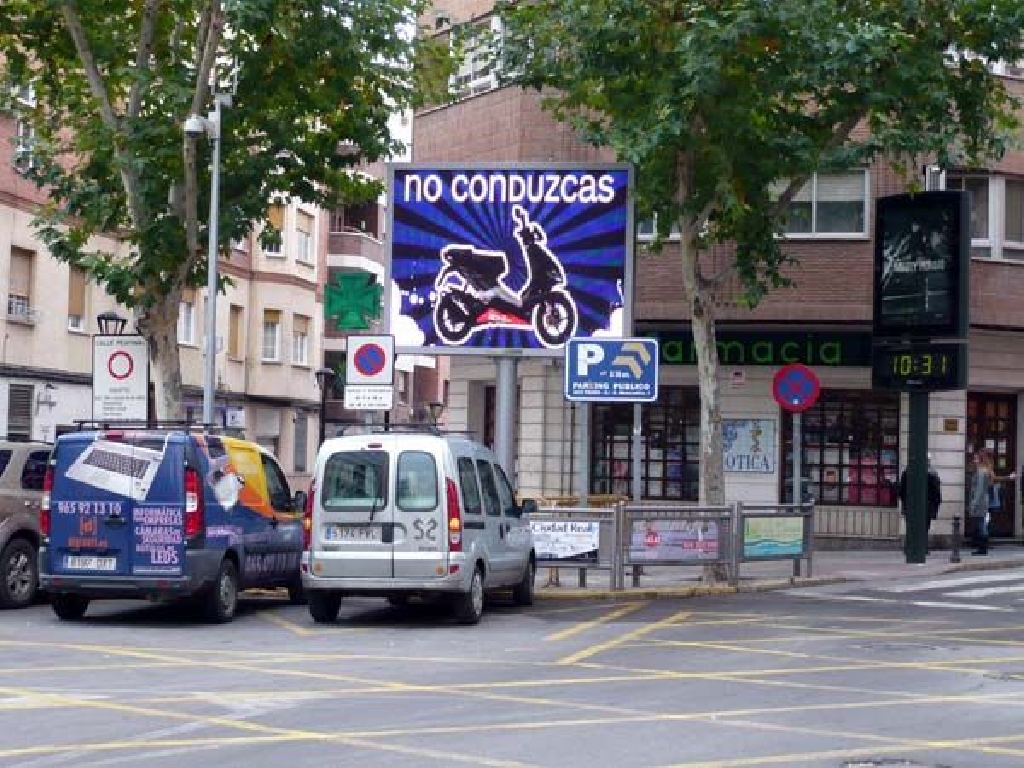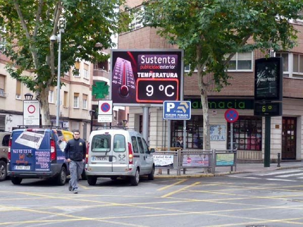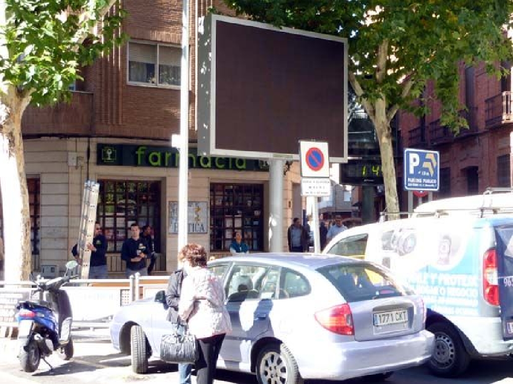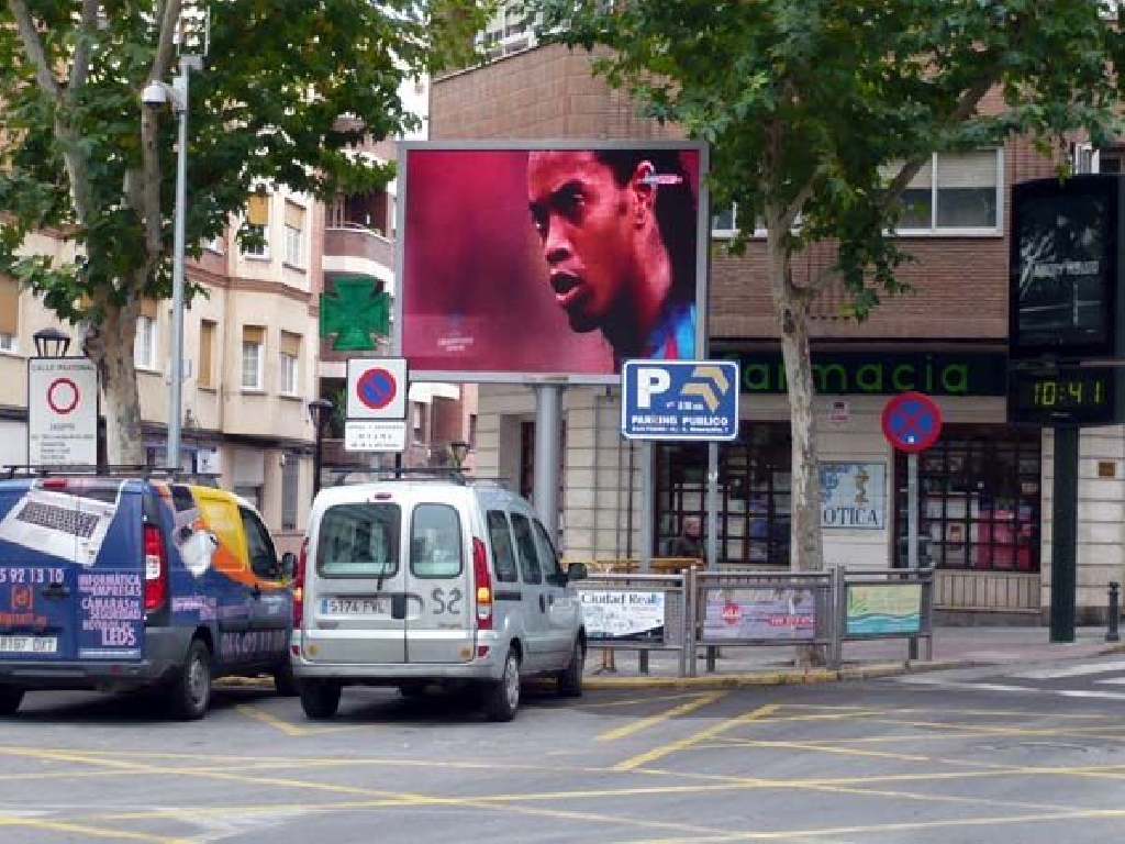Este monoposte para publicidad se encuentra ubicado en una zona de gran tr谩nsito de Ciudad Real. Los spots emitidos provocan varias decenas de miles de impactos al mes, con el consiguiente beneficio para los anunciantes. Sus dimensiones son de 307×230 cms., con una superficie de 7.1 m2. La pantalla fullcolor de leds P8V/16R tiene una resoluci贸n de 384×288 px.