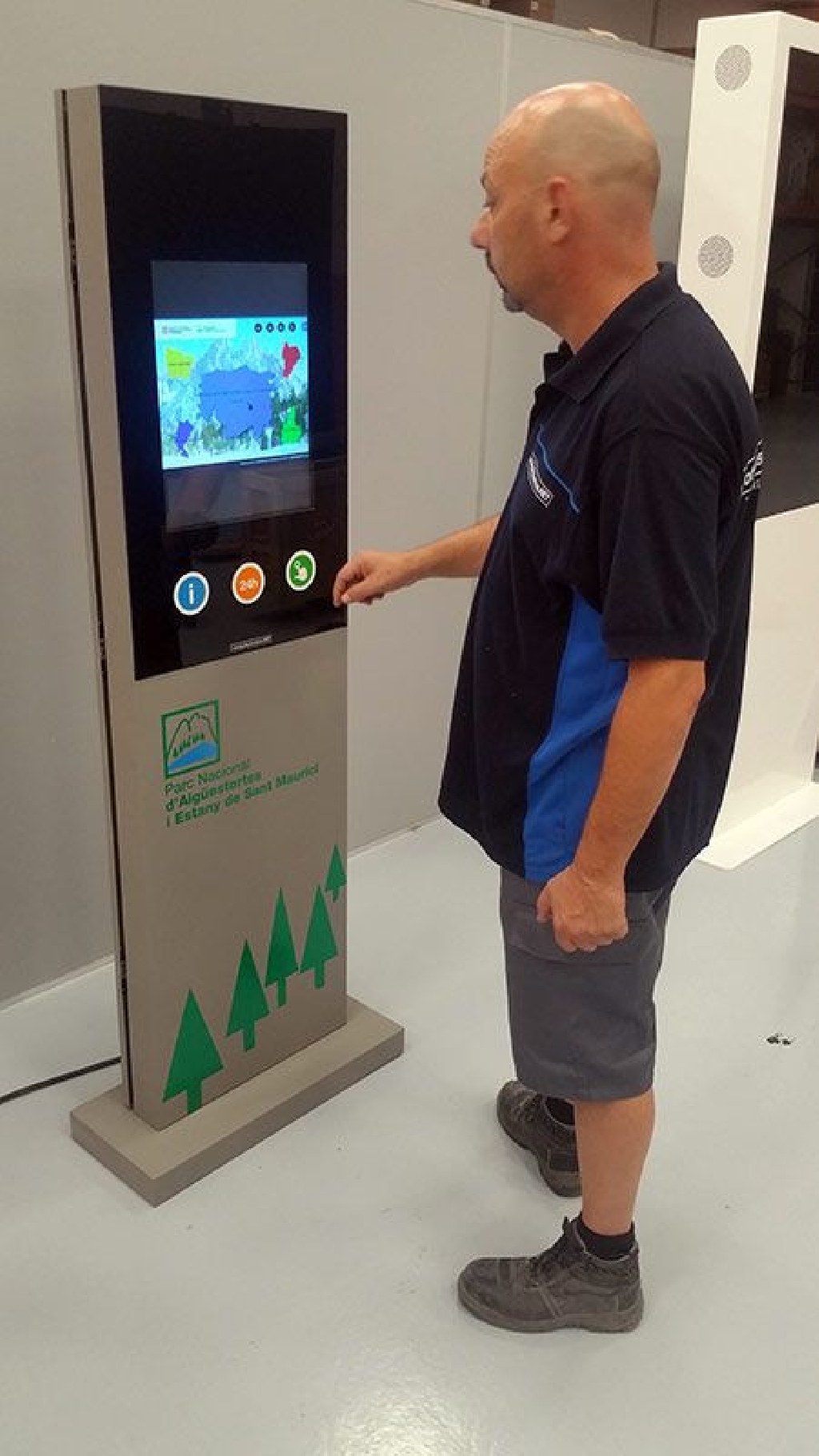 tótems táctiles interactivos con unas dimensiones de pantalla de 23×42 centímetros y un alto brillo. Este modelo está preparado para funcionar en exteriores e incluye un servidor profesional