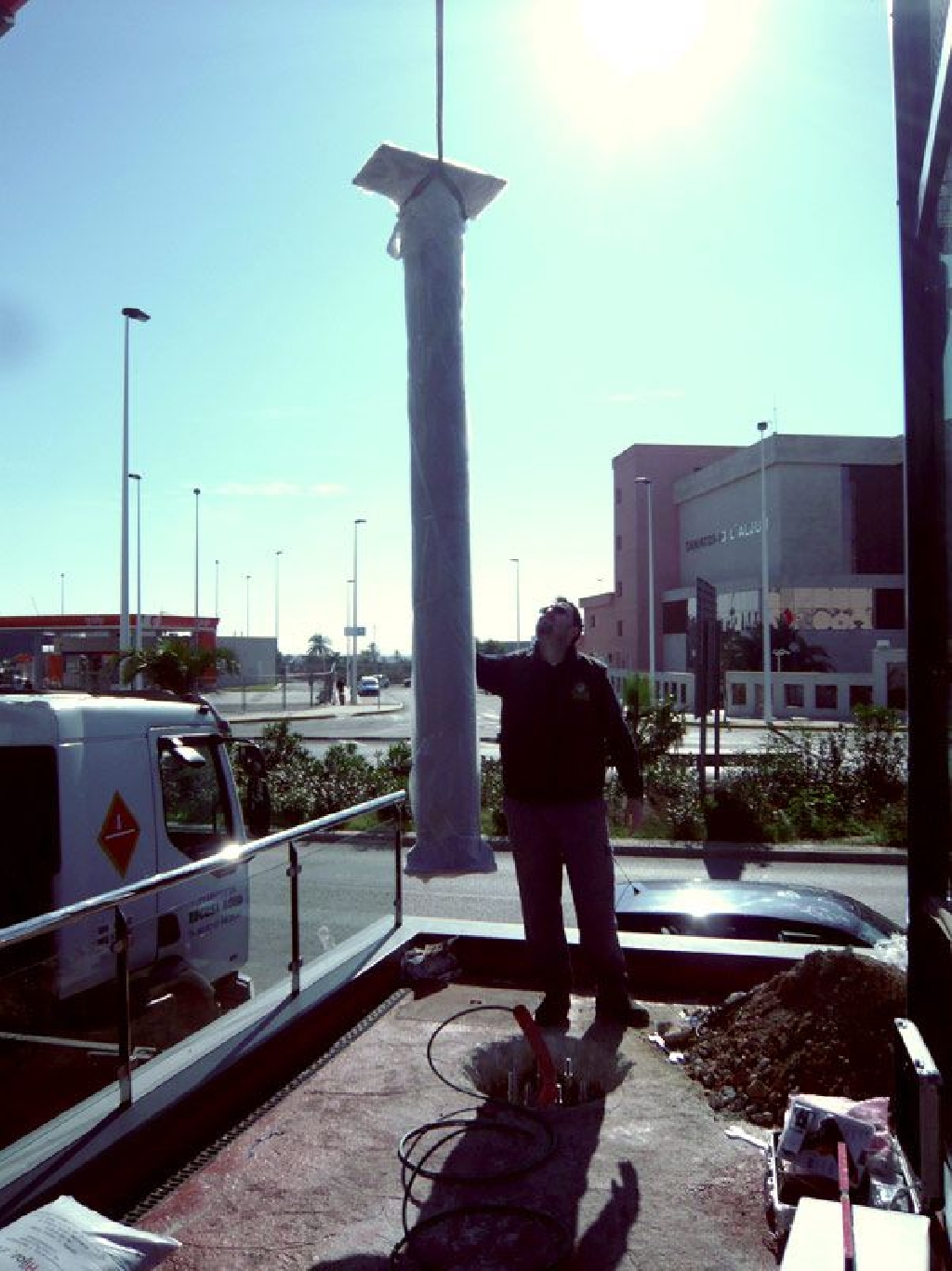 Pantalla fullcolor publiCITY iC02 instalada en Elche sobre monoposte para explotaci贸n como pantalla de publicidad. Dispone de r贸tulos superior retroiluminado para patrocinio publicitario.