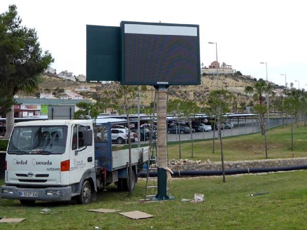 Fabricaci贸n de paneles publicitarios LED para instalaci贸n en campo de golf como cartel digital publicitario. Ubicado en una zona de paso obligatorio para acceder al campo de golf emite publicidad, consejos e informaci贸n de inter茅s para los jugadores.