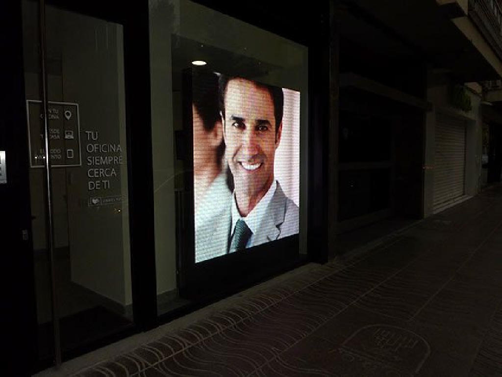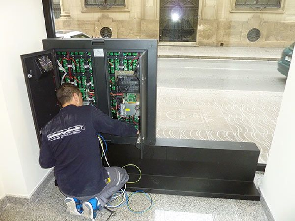 Suministro e instalaci贸n de pantalla led en Albacete para escaparate de oficina bancaria situada en la Calle Tesifonte Gallego, 25 de la capital manchega.