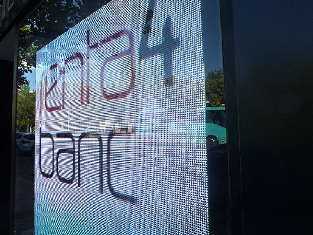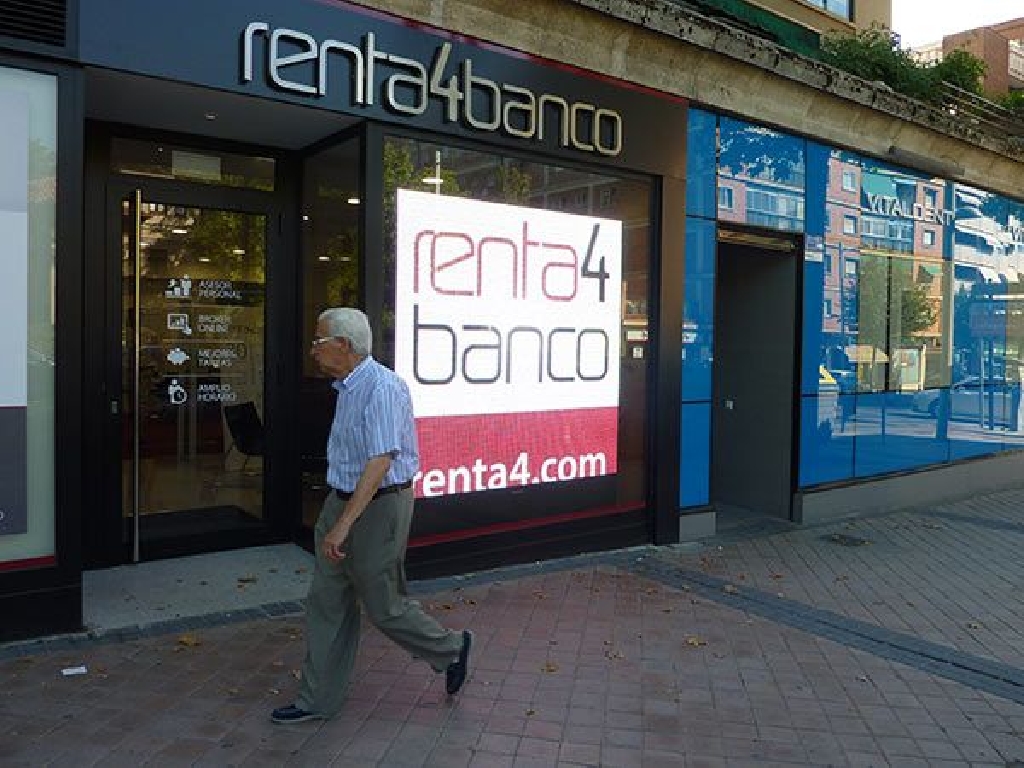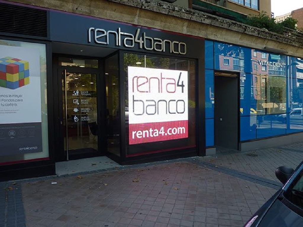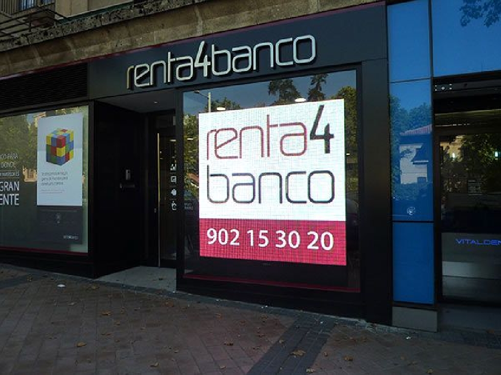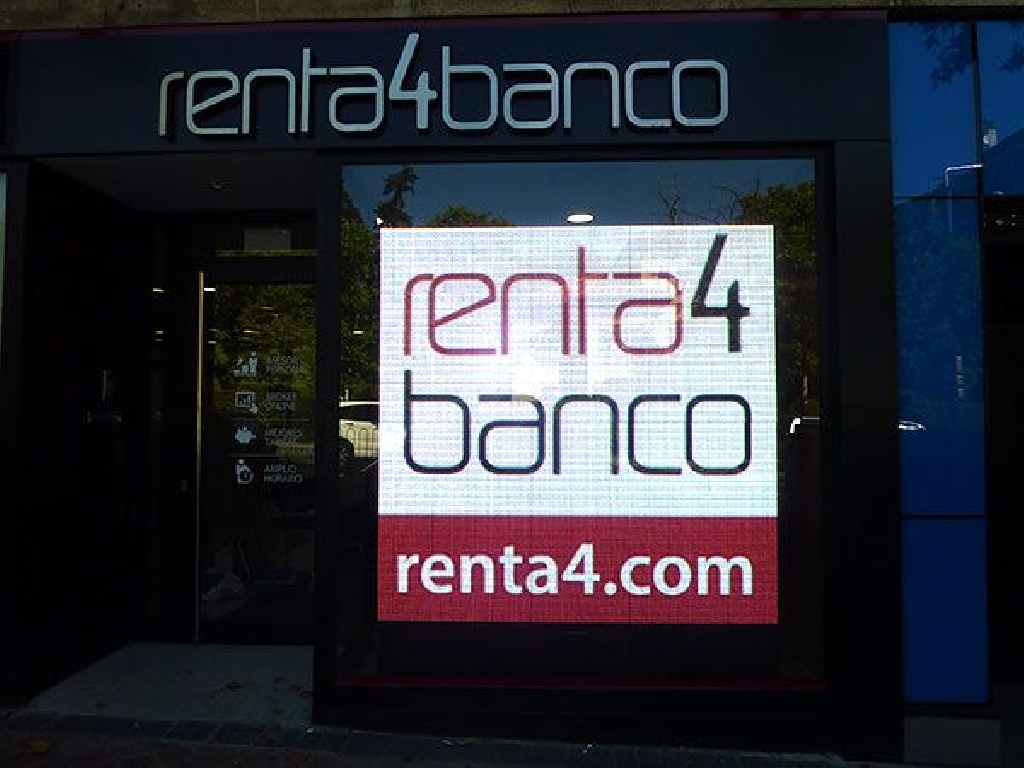 Pantalla de leds en Segovia para la instalaci贸n en el escaparate de la entidad financiera Renta4 de la capital segoviana. Dimensiones: 192×192 cm. Paso: P10 mm. Resoluci贸n: 192×192 px.