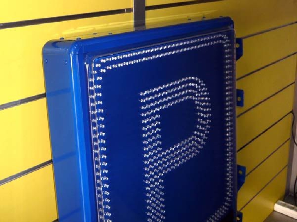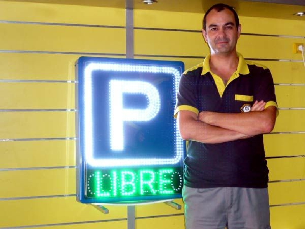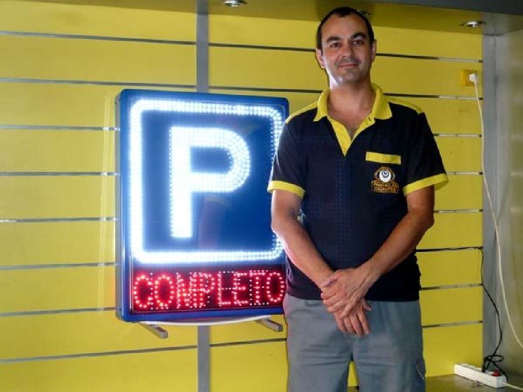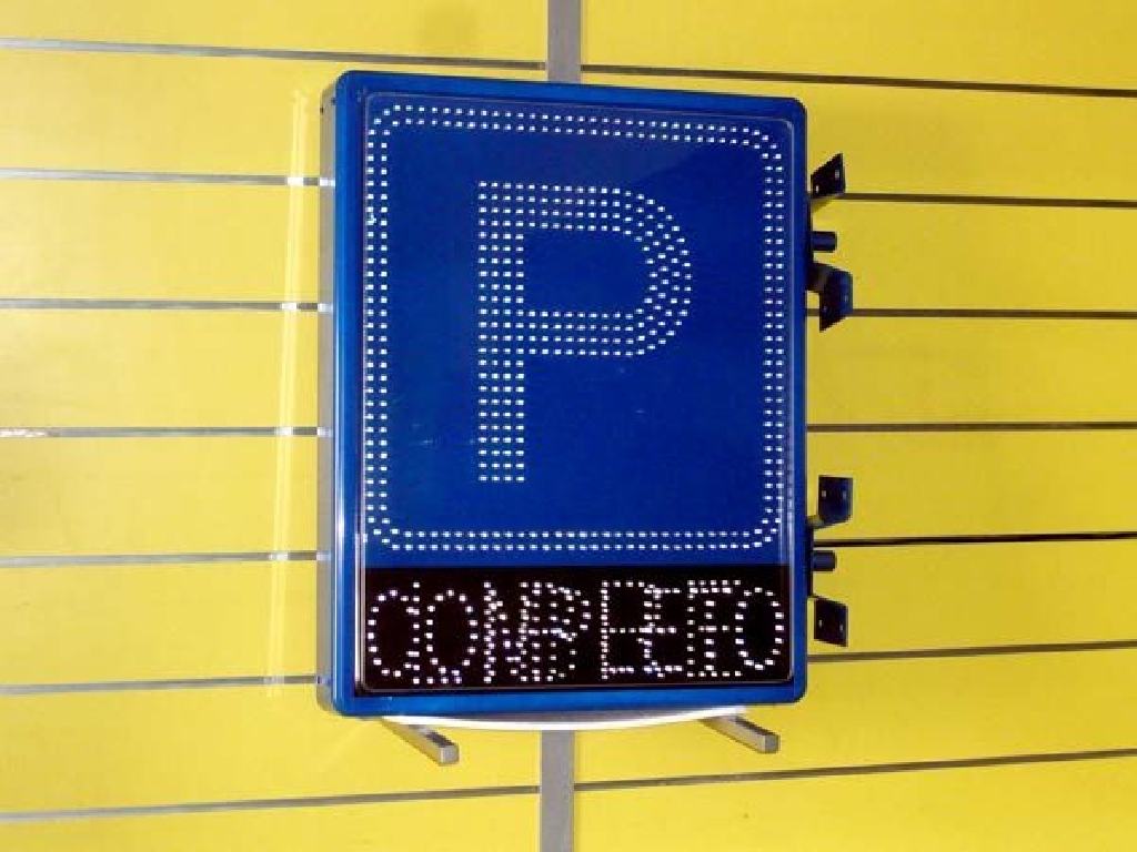 Señales de parking con indicador de ocupación en zona inferior tipo libre-completo. Está fabricada con leds de alto brillo de color blanco, para la P de la zona superior y su marco, y verdes y rojos para el rótulo que indica el nivel de ocupación del aparcamiento. Dimensiones: 60×80 cms. Disponemos de modelos con diferentes tamaños, con textos en catalán, con pantallas lineales de texto móvil, etc. Gracias a este tipo de rótulos luminosos los usuarios podrán encontrar fácilmente su aparcamiento, ya que estas señales de parking destacan incluso en las horas de más sol.