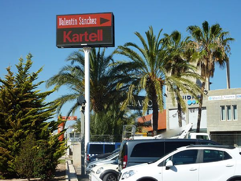 Valla monoposte de leds situada junto a la ctra. de Valencia a la salida de Alicante. Dimensiones de la pantalla: 416×224 cm. Pixel Pitch: P10mm. Resolución: 416×224 px. Se procedió a modernizar la instalación previa sustituyendo una valla estática en vinilo por una pantalla led digital y una valla estática en la parte trasera. Se aprovechó la estructura completa del monoposte y la obra civil ya realizada.