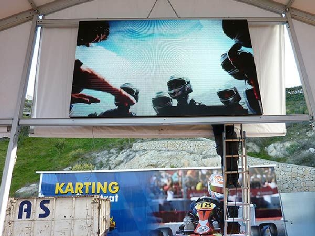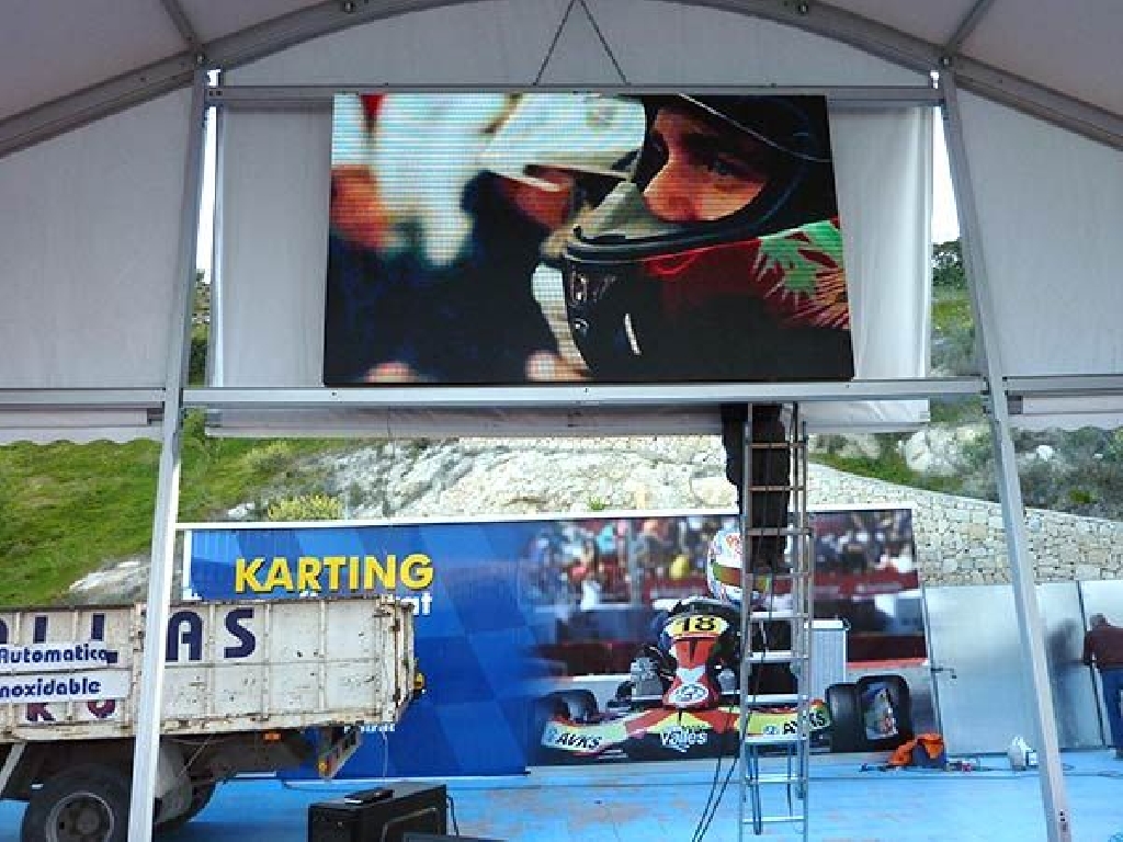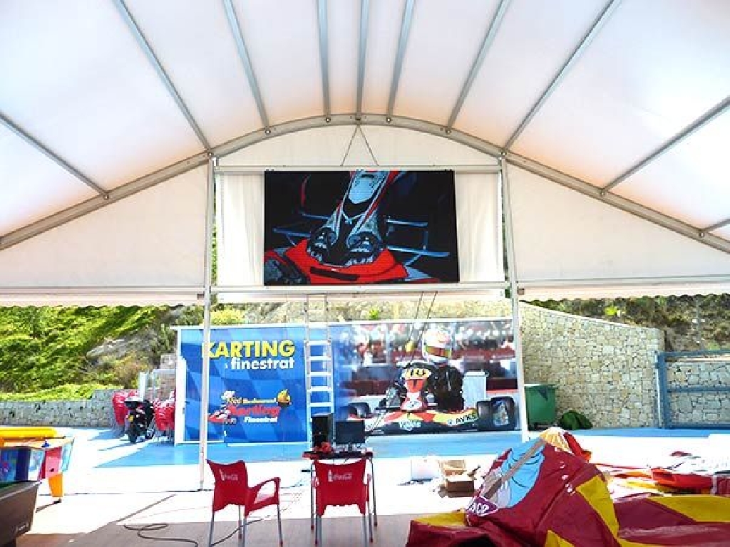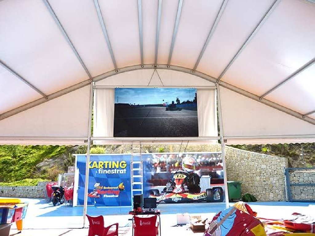 Suministro e instalaci贸n de videomarcadores para karting en el circuito de Karting Finestrat, situado cerca de Benidorm. La pantalla tiene unas dimensiones de 320×192 cm. Gracias a un paso P5 mm. (distancia entre puntos) goza de una gran definici贸n, alcanzando una resoluci贸n de 640×384 px. Son perfectos no s贸lo como marcadores de tiempos sino como pantallas gigantes para emitir carreras de MotoGP, F贸rmula 1, encuentros de f煤tbol, partidos de tenis, baloncesto, conciertos musicales, etc.